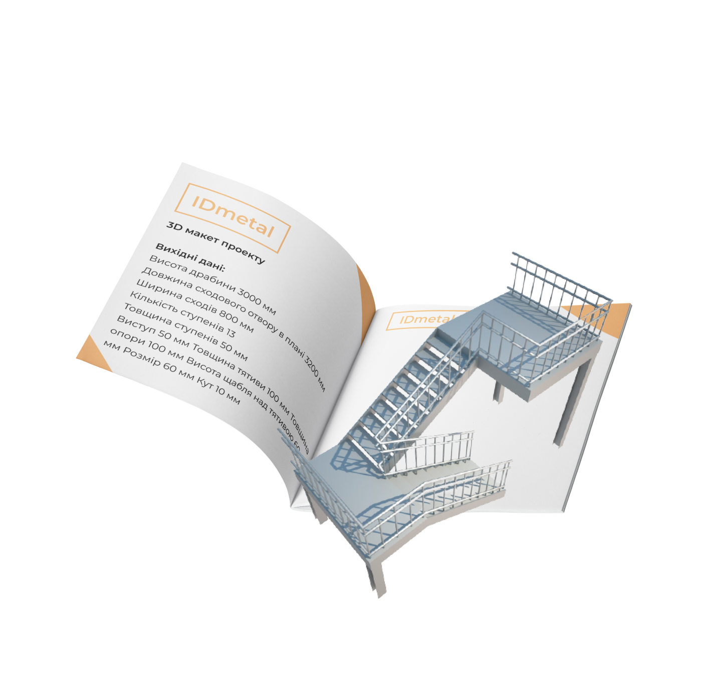 Ми виконуємо точні виміри на об'єкті за допомогою лазерних приладів, враховуємо всі нюанси і особливості які впливають на металовиріб. Після замірів виконується обмірне креслення і будується точна 3D модель.